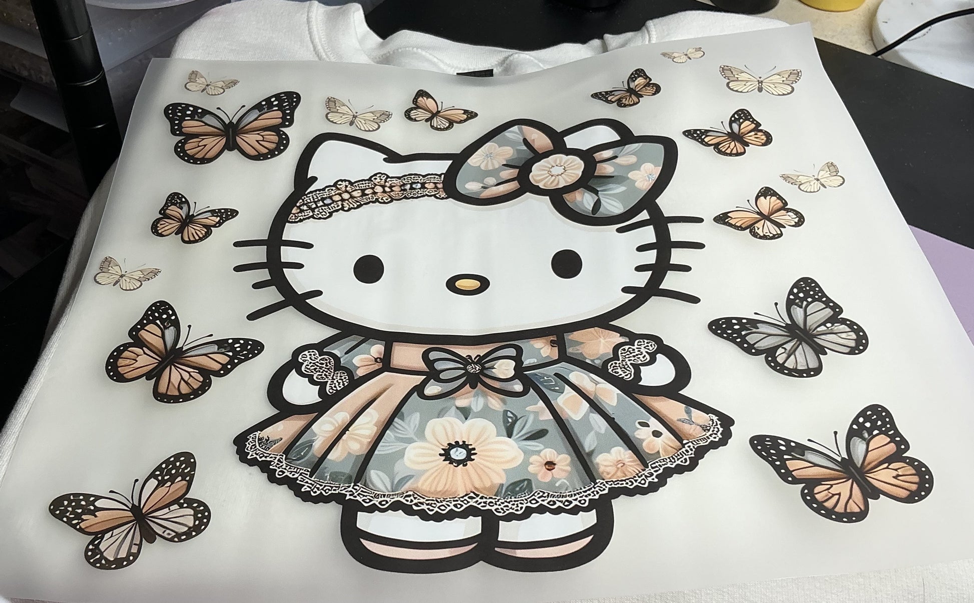 CUTE KITTY WITH BUTTERFIES #0151 PERFECT FOR OVERSIZE TSHIRTS (CHARACTERS)